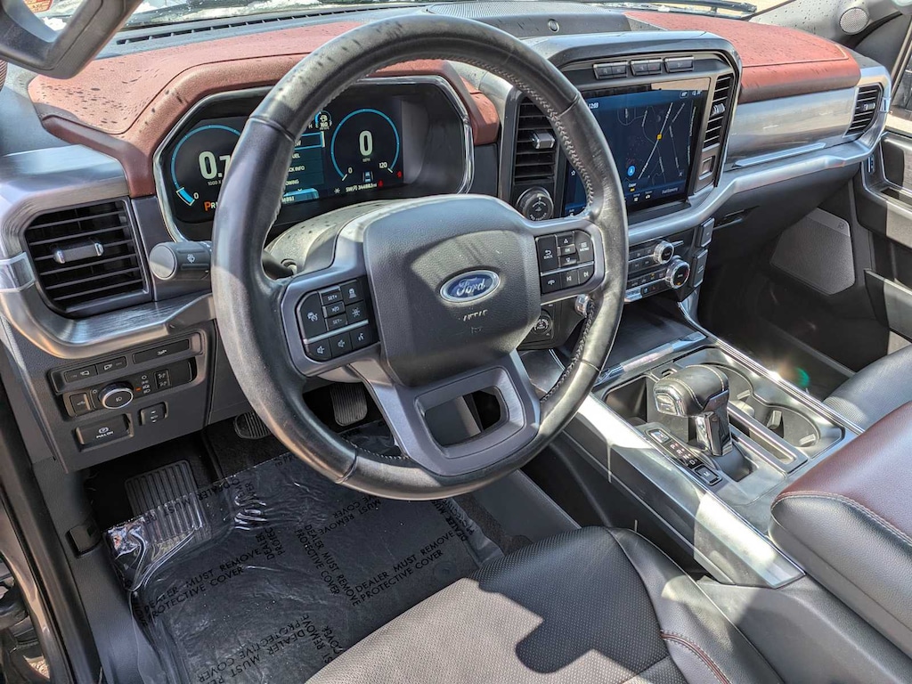 EQUIPMENT GROUP 502A HIGH Ford Co-Pilot360 Assist 2.0, rain-sensing wipers, Evasive Steering Assist, Connected Built-In Navigation, Navigation services require SYNC4 and FordPass Connect (optional on select vehicles), complimentary connect service and the FordPass app (see FordPass Terms for details), Eligible vehicles receive a complimentary 90-day trial of navigation services that begins on the new vehicle warranty start date, Customers must unlock the navigation service trial by activating the eligible vehicle w/a FordPass member account, If not subscribed by the end of the complimentary period, the navigation service will terminate, Connected service and features depend on compatible AT&T network availability, Evolving technology/cellular networks/vehicle capability may limit, ENGINE: 3.5L V6 ECOBOOST GVWR: 7,050 lbs Payload Package, 3.31 Axle Ratio, WHEELS: 20 6-SPOKE DARK ALLOY PAINTED ALUMINUM Tires: 275/60R20 BSW AT, ELECTRONIC LOCKING W/3.55 AXLE RATIO, LARIAT SPORT APPEARANCE PACKAGE unique interior finish, Box Side Decals, Chrome Single-Tip Exhaust, Accent-Color Angular Step Bars, Dark 2-Bar & 1 Minor Bar Style Grille, black surround and black mesh, Body-Color Front & Rear Bumpers, TRANSMISSION: ELECTRONIC 10-SPEED AUTOMATIC selectable drive modes: normal, ECO, sport, tow/haul, slippery, deep snow/sand and mud/rut (STD). MP3 Player, 4x4, Onboard Communications System, Keyless Entry, Privacy Glass, Steering Wheel Controls, Child Safety Locks.