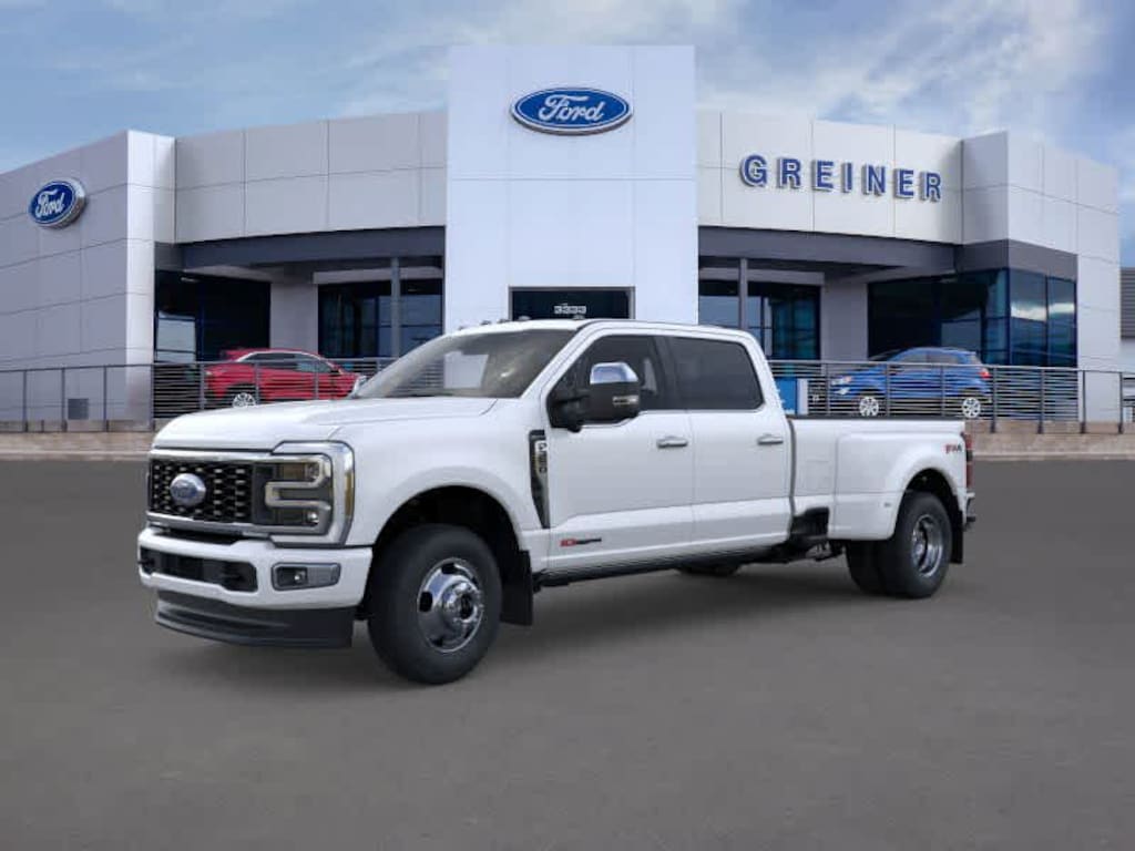 ENGINE: 6.7L HIGH OUTPUT POWER STROKE V8 DIESEL Turbo diesel B20, manual push-button engine-exhaust braking and Operator Commanded Regeneration (OCR), 48 Gallon Fuel Tank, 250 Amp Alternator, 3.55 Axle Ratio, Dual 68 AH AGM 750 CCA Batteries, PLATINUM PLUS PACKAGE satin chrome tailgate applique, front premium suede wrapped pillars, front premium leather interior grab handles and upgraded floor mat accents matching premium interior theme, Platinum Plus experience includes premium maintenance plan - coverage up to 2 years or 25,000 miles (whichever comes first), Covers routine inspections, preventive care, and replacement of normal wear and tear items that require periodic attention, elite welcome call, welcome package and tribute item, accessories discount (90 day window), FordPass rewards upgrade tier and 1:1 texting w/Ford truck expert, Premium Venetian Leather Door Panel, applied French stitching, Upfitter Switches (6), Located in overhead console, Illuminated Scuff Plates, Premium Leather IP Topper, upgraded Microwelt, RETRACTABLE TONNEAU PICKUP BOX COVER (PRE-INSTALLED), TOUGH BED SPRAY-IN BEDLINER tailgate-guard, black box bed tie-down hooks and black bed attachment bolts, LIMITED SLIP W/4.10 AXLE RATIO, GOOSENECK HITCH KIT (PRE-INSTALLED), TRANSMISSION: TORQSHIFT 10-SPEED AUTOMATIC SelectShift and selectable drive modes: normal, eco, slippery roads, tow/haul and off-road (STD). MP3 Player, 4x4, Onboard Communications System, Aluminum Wheels, Keyless Entry, Privacy Glass, Child Safety Locks.