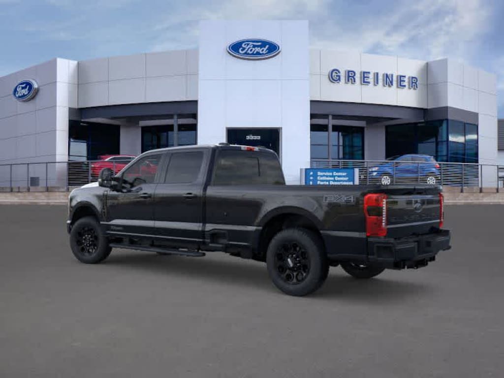 ENGINE: 6.7L 4V OHV POWER STROKE V8 TURBO DIESEL B20 manual push-button engine-exhaust braking and Operator Commanded Regeneration (OCR), 48 Gallon Fuel Tank, GVWR: 12,000 lb Payload Package, 3.31 Axle Ratio, Dual AGM 68 AH Battery, XLT PREMIUM PACKAGE Electrochromic Self-Dimming Rearview Mirror, PowerScope Trailer Tow Mirrors w/Heat, power-folding w/Autofold, telescoping, power glass, turn signal, high intensity LED security approach lamps and utility lighting system (LED side-mirror spotlights), LED Box Lighting, LED Center High-Mounted Stop Lamp (CHMSL), Remote Tailgate Release, Radio: B&O Sound System by Bang & Olufsen, HD Radio w/8 speakers including subwoofer, SYNC 4 w/Enhanced Voice Recognition, 12 center display, information on demand panel, wireless phone connection, cloud connected, AppLink w/app catalog, 911 Assist, Apple CarPlay® and Android Auto® compatibility, digital owners manual and conversational voice command recognition, SiriusXM w/360L, a 3-month trial subscription for all new SiriusXM-equipped, BLACK APPEARANCE PACKAGE front and rear black Ford ovals, box side decal (4x4, FX4 or Tremor), Rear Wheel Well Liners, Black Painted Front Grille Surround, Tough Bed Spray-In Bedliner, tailgate-guard, black box bed tie-down hooks and black bed attachment bolts, Body Color Front & Rear Bumpers, Wheels: 20 Ebony Black High Gloss, Black premium painted aluminum, gloss black hub cover/center ornament, Tires: LT275/65Rx20E BSW Automatic Transmission (4), Spare may not be the same as road tire, 6 Ebony Black Angular Running Boards, ELECTRONIC-LOCKING W/3.31 AXLE RATIO, TAILGATE STEP & HANDLE, TRANSMISSION: TORQSHIFT 10-SPEED AUTOMATIC SelectShift and selectable drive modes: normal, eco, slippery roads, tow/haul and off-road. 4x4, Privacy Glass, Child Safety Locks, Electronic Stability Control, Brake Assist, 4-Wheel ABS, Tire Pressure Monitoring System.