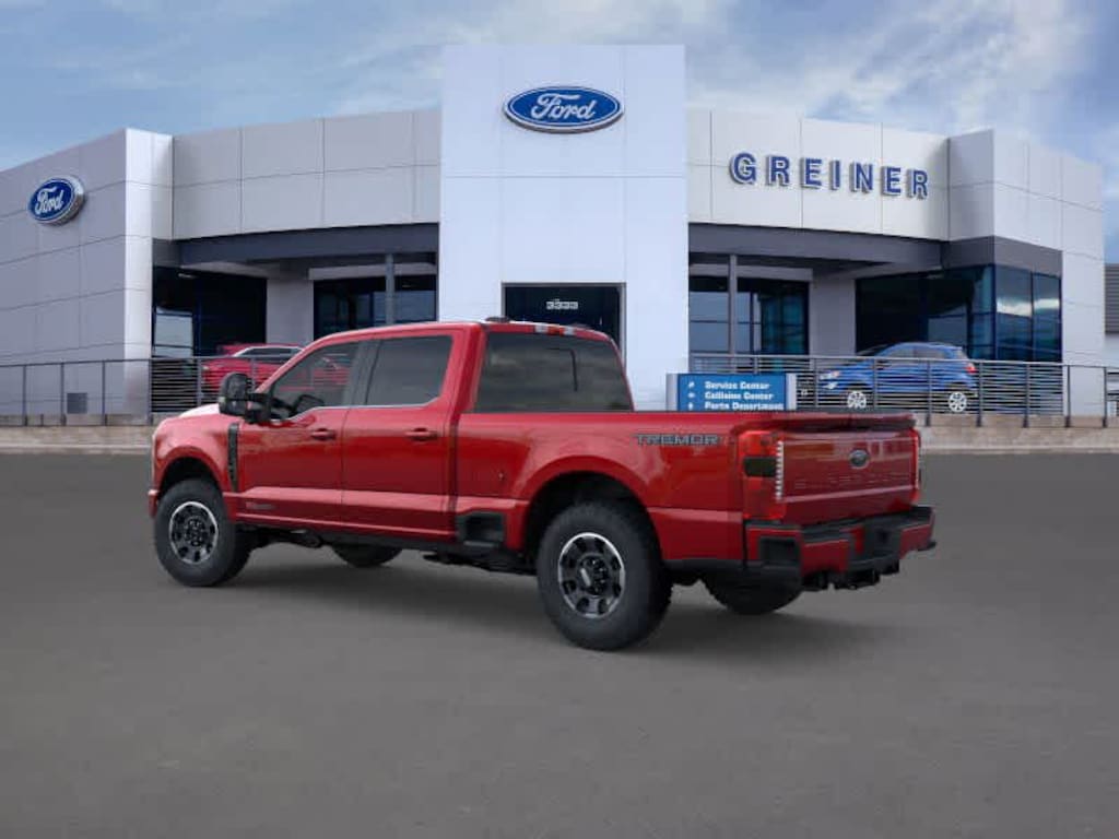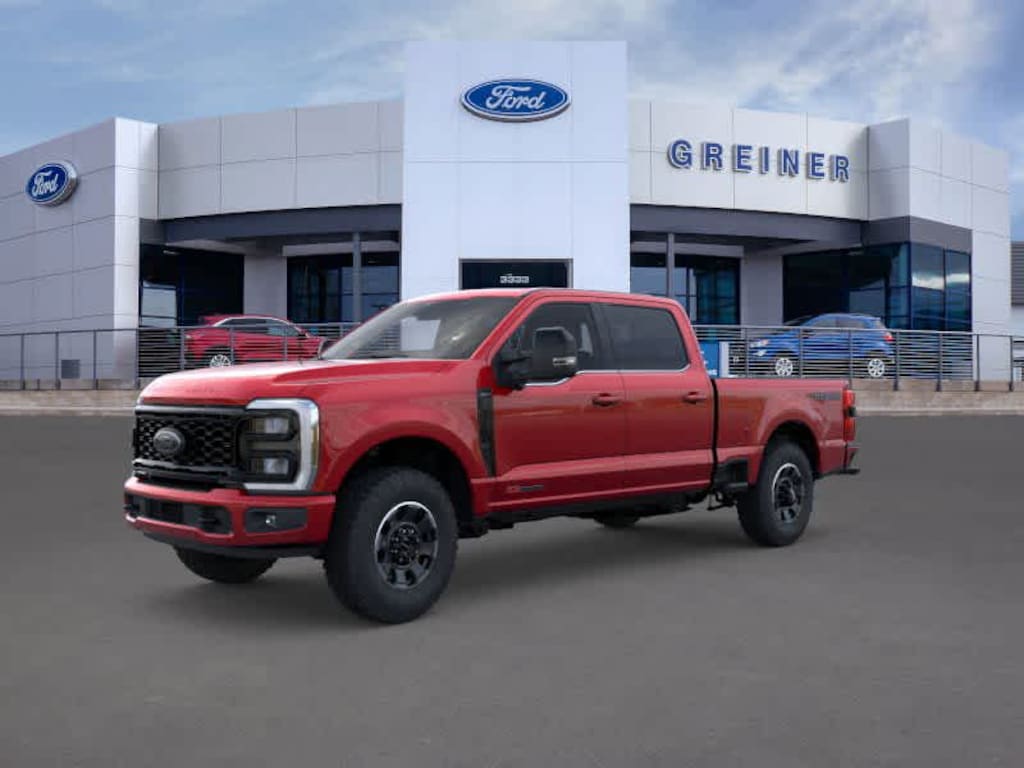 ENGINE: 6.7L HIGH OUTPUT POWER STROKE V8 DIESEL Turbo diesel B20, manual push-button engine-exhaust braking and Operator Commanded Regeneration (OCR), 250 Amp Alternator, 34 Gallon Fuel Tank, GVWR: 11,499 lb Payload Package, 3.31 Axle Ratio, Dual AGM 68 AH Battery, TREMOR OFF-ROAD PACKAGE unique front springs - ride height increase, rear electronic locking differential, front limited slip differential, performance front and rear shock absorbers, unique front air dams w/approach angle improvement, transfer case and axle water fording vent tubes, rock crawl mode, trail control mode and trail turn assist, Tremor Off-Road Decal, Transfer Case & Fuel Tank Skid Plates, Tires: LT285/75R18E BSW Automatic Transmission, Off-road, LT285/75R18E BSW Spare Tire, Textured Matte Finish Off-Road Running Boards, Conventional Road Spare Wheel, Wheels: 18 Ebony Black Machined & Painted Aluminum, BLACK APPEARANCE PACKAGE front and rear black Ford ovals, box side decal (4x4, FX4 or Tremor) and ebony black fender vent surround dark fender badge, Rear Wheel Well Liners (Pre-Installed), Black Painted Front Grille Surround, Ebony Black Painted Mirror Caps, Tough Bed Spray-In Bedliner, tailgate-guard, black box bed tie-down hooks and black bed attachment bolts, Body Color Front & Rear Bumpers, Wheels: 20 Ebony Black High Gloss, Black premium painted aluminum, gloss black hub cover/center ornament, Tires: LT275/65Rx20E BSW Automatic Transmission (4), Spare may not be the same as road tire, 6 Ebony Black Angular Running Boards, LARIAT ULTIMATE PACKAGE Tailgate Step & Handle, Head-Up Display, 4-Way Adjustable Headrests, Power-Deployable Running Boards, Radio: B&O Unleashed Sound System by Bang & Olufsen, HD Radio w/14 speakers including subwoofer, LARIAT PREMIUM PACKAGE Pro Trailer Hitch Assist, Ford Co-Pilot 360 Assist 2.0, rear view camera and reverse brake assist, Pre-Collision Assist, Automatic Emergency Braking (AEB), pedestrian detection, forward collision warning, dynamic brake support and intersection assist, Post-Collision Braking, Lane-Keeping System, lane-keeping alert, lane-keeping aid and driver alert, Front & Rear Parking Sensors, Automatic High Beam, Adaptive Cruise Control w/Stop-and-Go, lane centering and predictive speed assist, Power-Sliding Rear-Window w/Defrost, Pro Trailer Backup Assist, trailer reverse guidance, Lane Departure Warning, TWIN PANEL POWER MOONROOF map lights and moonroof switches, TRANSMISSION: TORQSHIFT 10-SPEED AUTOMATIC SelectShift and selectable drive modes: normal, eco, slippery roads, tow/haul and off-road. MP3 Player, 4x4, Onboard Communications System, Keyless Entry, Privacy Glass, Child Safety Locks, Steering Wheel Controls.