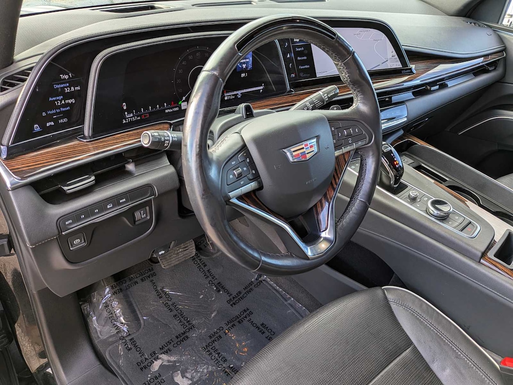 SUPER CRUISE a hands-free driver assistance system for use on compatible roads (Vehicles built between October, 2021 and December 5, 2021, will be forced to have (00U) Not Equipped with Super Cruise, which removes Super Cruise and its content. Beginning with production starting December 6, 2021, (UKL) Super Cruise will be forced on as standard content. Beginning with production starting May 9, 2022, vehicles will be forced to include (00U) Not Equipped with Super Cruise, which removes Super Cruise and its content. See dealer for details or the window label for the features on a specific vehicle. Always pay attention while driving and when using Super Cruise. Do not use a hand-held device. Visit cadillac.com/supercruise for compatible roads and full details.), OLED INFOTAINMENT EXPERIENCE WITH NAVIGATION AM/FM/SiriusXM with 360L with 16.9 diagonal color information display (displays and controls navigation, music and all features and functions of the vehicle), personalized profiles for each drivers settings, Natural Voice Recognition, Phone Integration for Wireless Apple CarPlay®/Wireless Android Auto® capability for compatible phone, Connected Apps and Teen Driver (STD), ENGINE, 6.2L V8 WITH DYNAMIC FUEL MANAGEMENT Direct Injection and Variable Valve Timing, includes aluminum block construction (420 hp [313.2 kW] @ 5600 rpm, 460 lb-ft of torque [623.7 Nm] @ 4100 rpm) (STD), TRANSMISSION, 10-SPEED AUTOMATIC electronically controlled with overdrive, tow/haul mode and tap up/tap down shifting (STD). Sunroof, 4x4, Aluminum Wheels, Privacy Glass, Remote Trunk Release, Keyless Entry, Steering Wheel Controls.